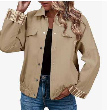 50% off fall jackets! 🍂 It’s giving barn jacket vibes but with a fun twist — plaid sleeves! Such a cute and different take on the classic fall look! 👏 Size s-xxl #ad