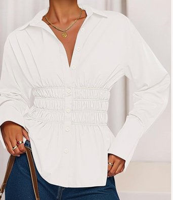 45% off button down peplum style blouses. Well these are pretty! That waist smocking will give you a nice shape and show off what you want to. Size s-xl #ad