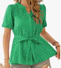 Refresh your wardrobe with beautiful short sleeve button-down embroidered style tops! 10% off, plus clip an additional 30% off for a fabulous deal! The trendy tie waist gives it a lovely peplum look that I absolutely adore! Available in sizes S-XL #ad