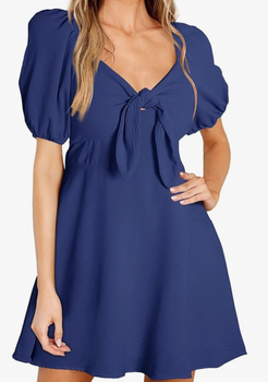 Snag 50% off puff sleeve tie front dresses, plus clip an extra 10% off! 🌟 You can still wear a bra with this—the opening is super small, and the tie is just an added cute detail! Available in sizes S-XL. #ad
