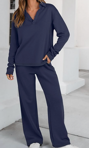 š Enjoy 50% off 2-piece sets! Featuring a V-neck top with collar and wide-leg sweatpants. I love that it looks fabulous with the top untucked! Available in sizes S-XL #ad