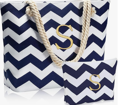šļø 50% off initial chevron beach bag with makeup bag set! šļø Perfect as a gift or for yourselfāsuper useful for pool and beach days. Don't miss out on this deal! ššāØ #BeachBag ad