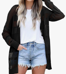 🌞 50% OFF open-front lightweight crochet knit cardigans! 🌟 Perfect for warm weather coverage with a stylish, striped texture that I love! 😍 Light, breezy, and the perfect layering piece. Available in sizes S-XXL. #ad