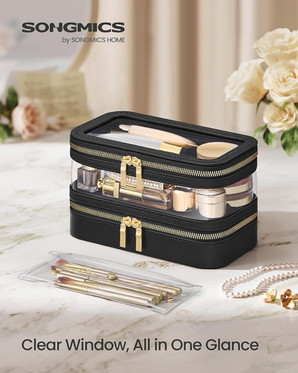 Organize your beauty essentials in style with a fabulous Makeup Bag featuring a built-in mirror, jewelry storage, and a separate brush storage pouch! Plus, with a transparent window, you can easily see all your items at a glance. #ad