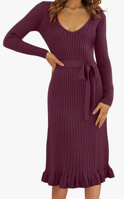 Snag these adorable Long Sleeve V Neck Pleated Slim Ribbed Knit Midi Dresses with a belt! Use the 30% off code and donāt forget to apply the 28% off coupon for even more savings! Available in sizes S-XL, these dresses are perfect for the fall season. #ad