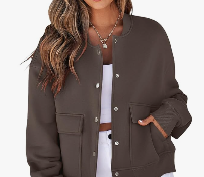YYYAAAY it’s back! 🙌 35% off sweatshirt bomber jackets—fleece inside, bomber style outside. Cozy + cute! TTS, oversized fit. Size S-XXL 🖤 #ad