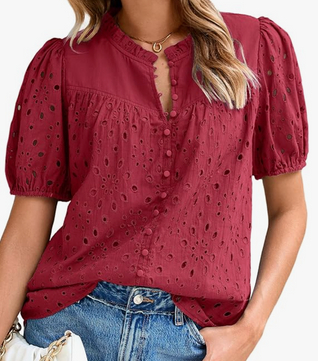 These short sleeve eyelet blouses are seriously so pretty ā and the dainty buttons are the perfect touch! ⨠Feminine, lightweight, and easy to dress up or down. Sizes SāXL available #ad