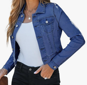 Don't miss out! Enjoy 45% off on trendy cropped denim jackets! They're stretchy, comfortable, and available in a variety of colors. If you prefer a longer fit, consider sizing up. Available in sizes XS-XXL! 🧥✨ #ad