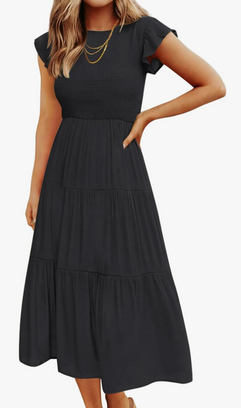 40% off!!! Check out the Flutter Short Sleeve Crew Neck Smocked Elastic Waist Tiered Midi Dress! With sizes available from XS-XXL, it’s perfect for any occasion. The flutter sleeves and tiered design add a lovely touch! Don’t miss out on this beautiful piece! 💖👗 #ad