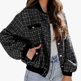 🖤✨ Cyber Monday Deal! 🎉 Enjoy 42% off stylish tweed bomber jackets! Tweed is a must-have for winter, and this bomber is a fun and chic way to wear it! Available in sizes S-XXL. #ad
