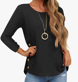 Say goodbye to summer and hello to fall with 3/4 length sleeve tops featuring a chic button detail on the side! And the best part? They're 40% OFF! Perfect for layering or wearing on their own, these tops are a must-have for any season. Sizes S-XXL #ad