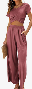 Get 40% off with code and coupon on this cute 2-piece set. Featuring a short sleeve, ribbed knot crop top, and wide-leg pants with pockets. Available in sizes S-XXL. Don't miss out on this fabulous deal for a trendy and coordinated look! šļøš #TwoPieceSetChic #FashionFinds #SavingsBonanza #linkinbio ad