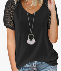 30% off + clip an extra 20% off on a v-neck short sleeve top with lace sleeve detailing. This adorable piece adds a touch of elegance to your wardrobe. Available in sizes S-XXL. Grab this stylish deal now! šļøš #FashionDeals #TrendyStyle #ShopSmart #linkinbio ad