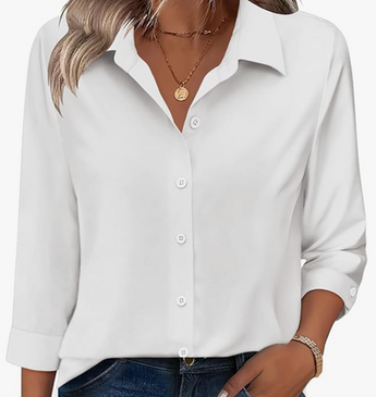 Adorable 3/4 sleeve button down v-neck. Size S-2XL. Under $15.