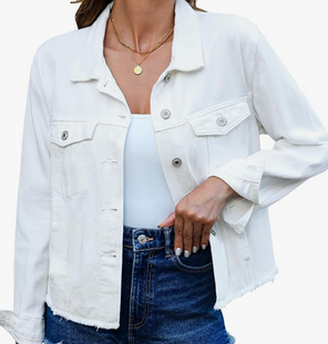 50% off denim jackets with raw hem! This is not a stretchy one but its a comfortable lighter weight material. Great jacket! I like tts. Size s-xxl. Enter code WLQBVCDY at checkout