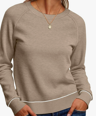 ✨ On sale + 45% OFF crewneck knit sweaters! Love the white trim—such a preppy vibe 😍