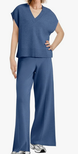 On sale + 50% off 2 piece knit sets! Love the sleeveless hoodie top and wide leg pants. I think this would be so cute with a denim jacket and that hood popping out! Size s-xl #ad