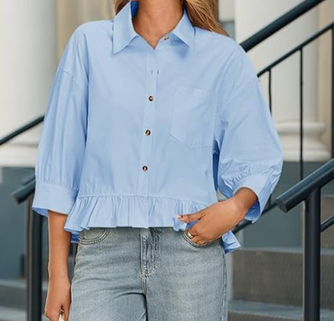 Fun + flirty š Peplum button-down blouses 35% off! Size SāXXL #ad